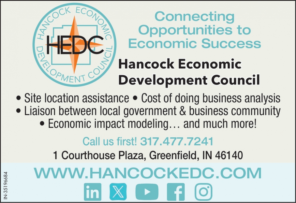 Sep 27, 2025. Hancock Economic Development Council Government Ads from Greenfield Reporter