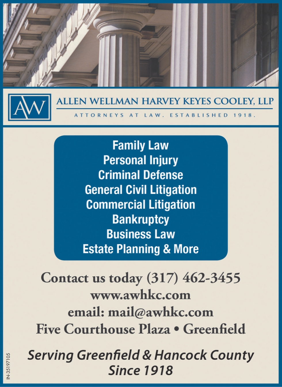 Sep 27, 2025. Allen Wellman McNew Harvey, LLP Attorneys Ads from Greenfield Reporter