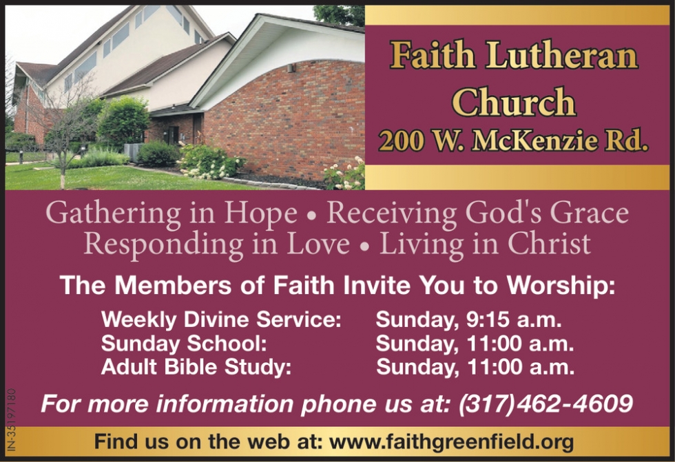 Sep 27, 2025. Faith Lutheran Church Church Ads from Greenfield Reporter