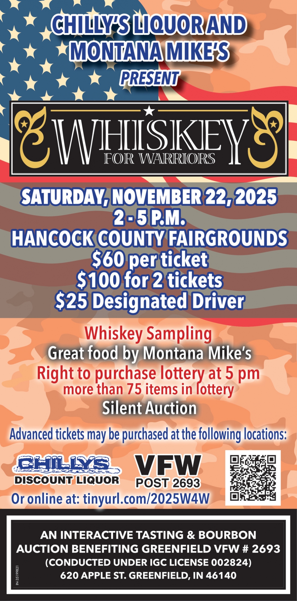 Ads for Whiskey for Warriors (November 23, 2025) in Greenfield, IN