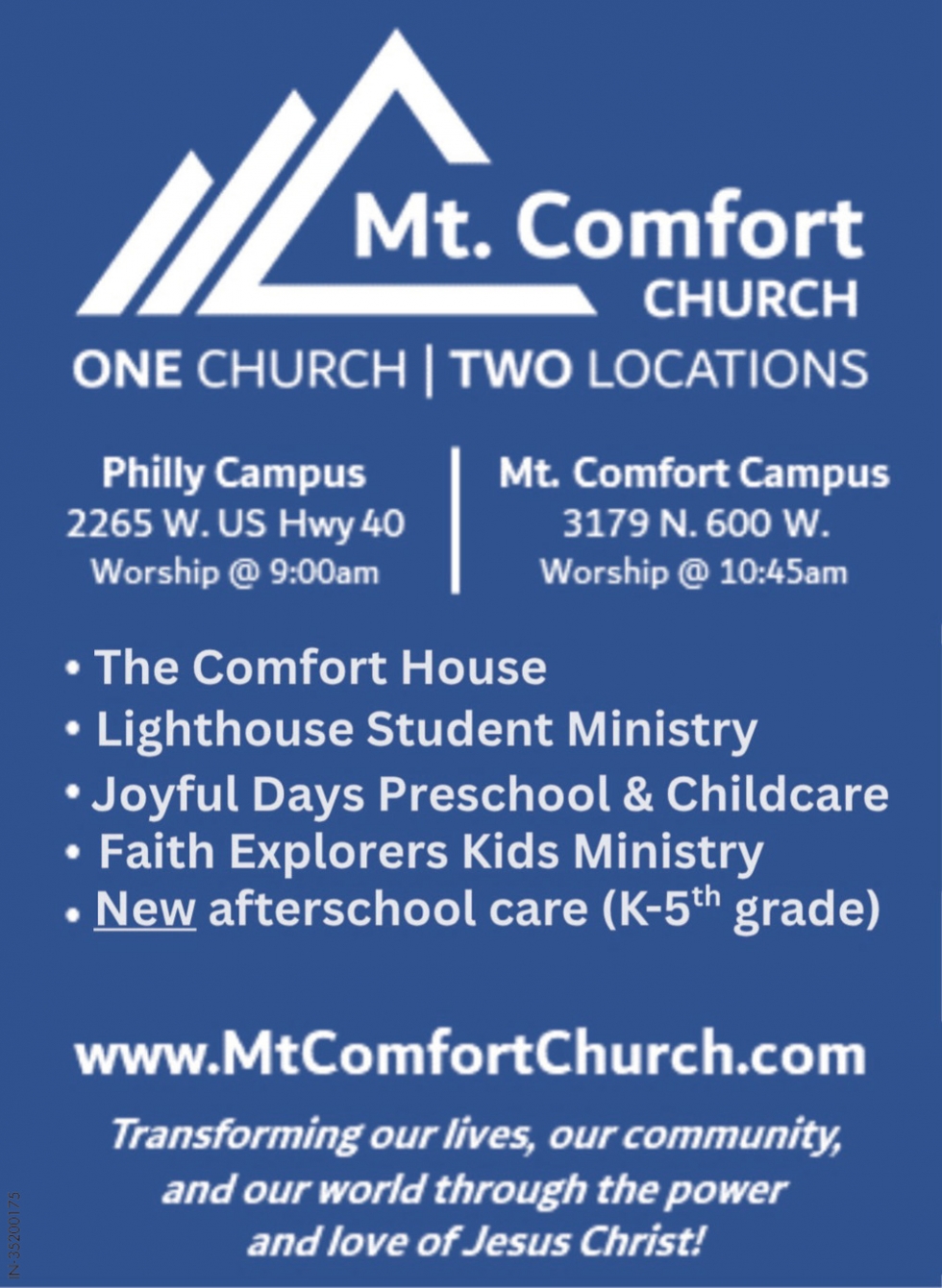 Nov 22, 2025. Mt. Comfort Church Church Ads from Greenfield Reporter