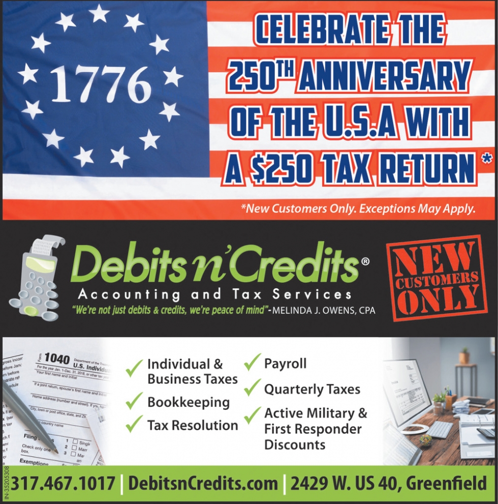 Ads for Debits N' Credits in Greenfield, IN