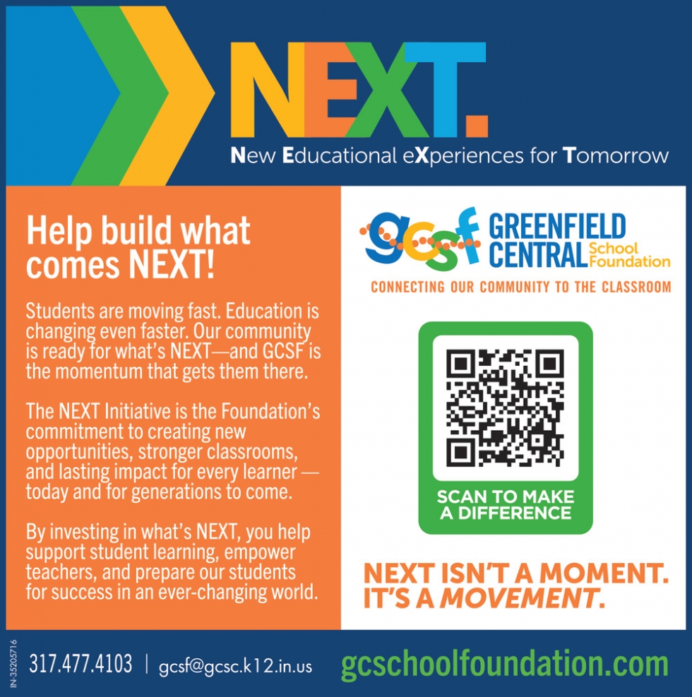 Feb 21, 2026. Greenfield Central School Foundation Education Ads from Greenfield Reporter