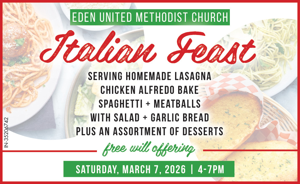 Feb 28, 2026. Eden United Methodist Church Church Ads from Greenfield Reporter
