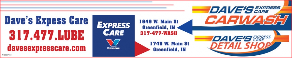 Ads for Dave's Express Care Carwash in Greenfield, IN
