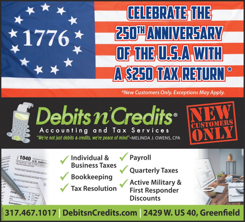 Ads for Debits N' Credits in Greenfield, IN